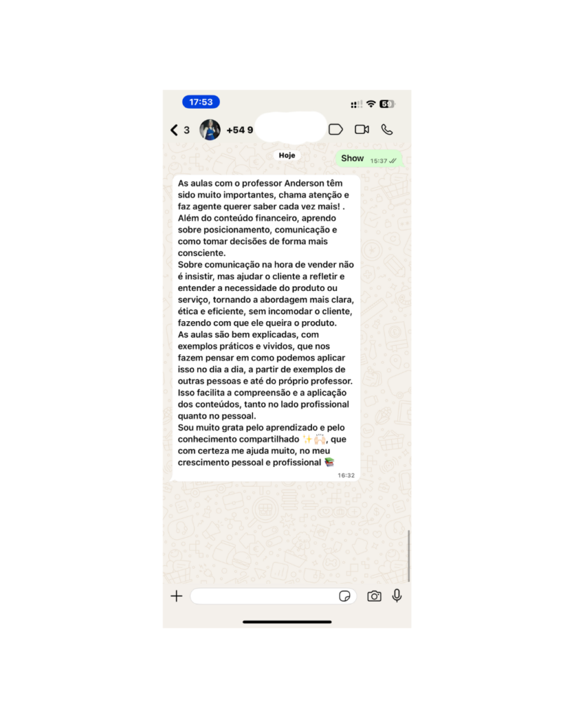✔️ Resposta: Muitos alunos aplicam as técnicas no mesmo dia e já percebem mudanças na resposta dos clientes. Comunicação é impacto imediato — quando você muda a forma de falar, muda a forma como o cliente reage.